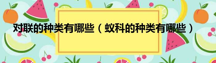 大家好,小东方来为大家解答以上的问题。对联的种类有哪些,蚁科的种类有哪些这个很多人还不知道,现在让我们一起来看看吧!