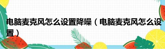电脑麦克风怎么设置降噪(电脑麦克风怎么设置)