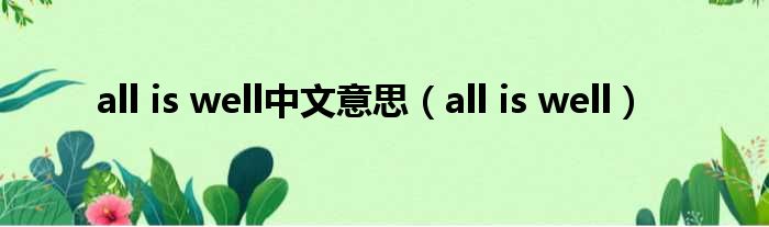 大家好,小东方来为大家解答以上的问题。all is well中文意思,all is well这个很多人还不知道,现在让我们一起来看看吧!