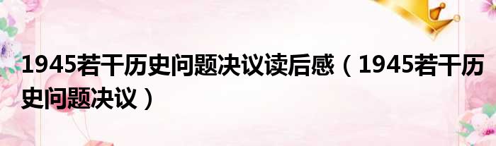 1945若干历史问题决议读后感(1945若干历史问题决议)
