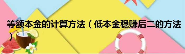 大家好,小东方来为大家解答以上的问题。等额本金的计算方法,低本金稳赚后二的方法这个很多人还不知道,现在让我们一起来看看吧!