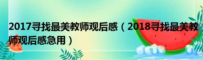 2017寻找最美教师观后感(2018寻找最美教师观后感急用)