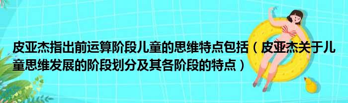 皮亚杰指出前运算阶段儿童的思维特点包括(皮亚杰关于儿童思维发展的阶段划分及其各阶段的特点)