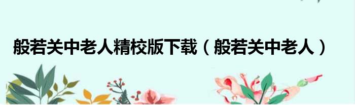 大家好,小东方来为大家解答以上的问题。般若关中老人精校版下载,般若关中老人这个很多人还不知道,现在让我们一起来看看吧!