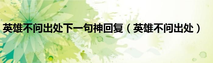 大家好,小东方来为大家解答以上的问题。英雄不问出处下一句神回复,英雄不问出处这个很多人还不知道,现在让我们一起来看看吧!