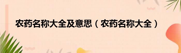 大家好,小东方来为大家解答以上的问题。农药名称大全及意思,农药名称大全这个很多人还不知道,现在让我们一起来看看吧!