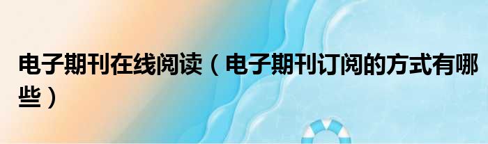 电子期刊在线阅读(电子期刊订阅的方式有哪些)
