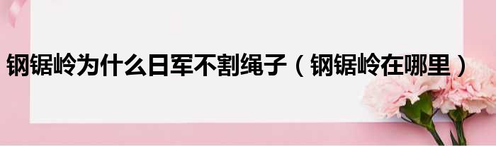 大家好,小东方来为大家解答以上的问题。钢锯岭为什么日军不割绳子,钢锯岭在哪里这个很多人还不知道,现在让我们一起来看看吧!