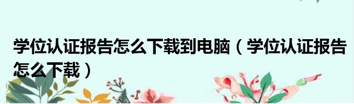 学位认证报告怎么下载到电脑(学位认证报告怎么下载)