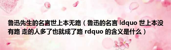鲁迅先生的名言世上本无路(鲁迅的名言 ldquo 世上本没有路 走的人多了也就成了路 rdquo 的含义是什么)