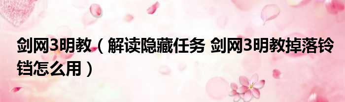 剑网3明教(解读隐藏任务 剑网3明教掉落铃铛怎么用)