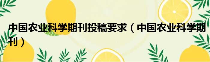 中国农业科学期刊投稿要求(中国农业科学期刊)