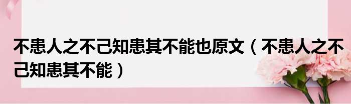不患人之不己知患其不能也原文(不患人之不己知患其不能)