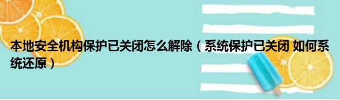 本地安全机构保护已关闭怎么解除(系统保护已关闭 如何系统还原)
