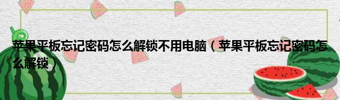苹果平板忘记密码怎么解锁不用电脑(苹果平板忘记密码怎么解锁)