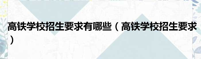 高铁学校招生要求有哪些(高铁学校招生要求)