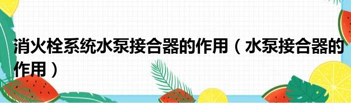 消火栓系统水泵接合器的作用(水泵接合器的作用)