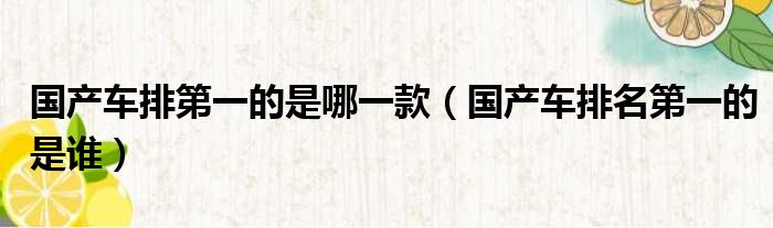 国产车排第一的是哪一款(国产车排名第一的是谁)