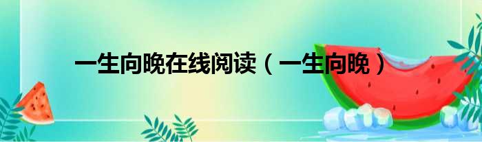 大家好,小东方来为大家解答以上的问题。一生向晚在线阅读,一生向晚这个很多人还不知道,现在让我们一起来看看吧!