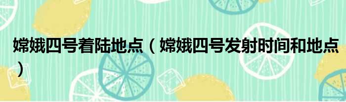 嫦娥四号着陆地点(嫦娥四号发射时间和地点)