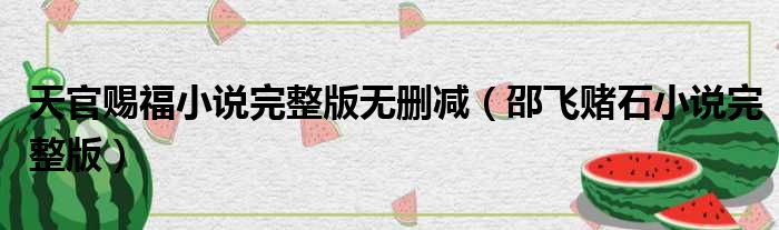 天官赐福小说完整版无删减(邵飞赌石小说完整版)
