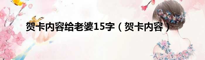 大家好,小东方来为大家解答以上的问题。贺卡内容给老婆15字,贺卡内容这个很多人还不知道,现在让我们一起来看看吧!