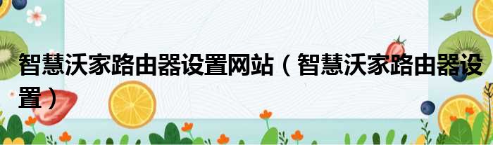 智慧沃家路由器设置网站(智慧沃家路由器设置)