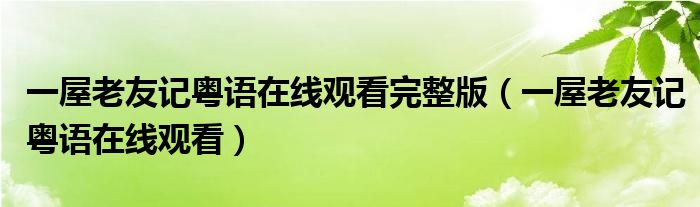 一屋老友记粤语在线观看完整版(一屋老友记粤语在线观看)
