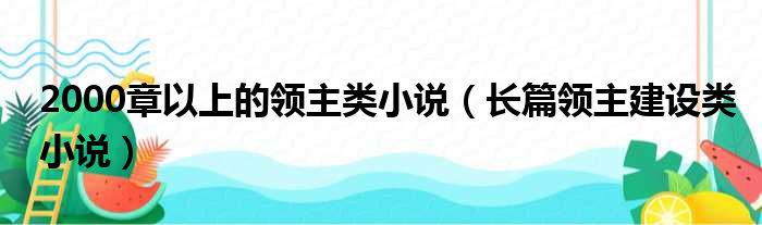 大家好,小东方来为大家解答以上的问题。2000章以上的领主类小说,长篇领主建设类小说这个很多人还不知道,现在让我们一起来看看吧!