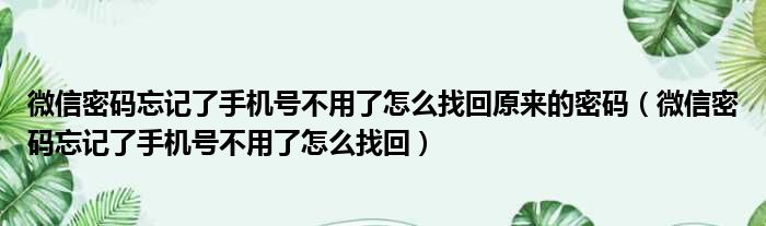 微信密码忘记了手机号不用了怎么找回原来的密码(微信密码忘记了手机号不用了怎么找回)