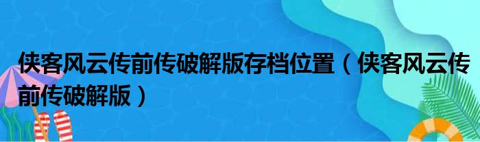 侠客风云传前传破解版存档位置(侠客风云传前传破解版)
