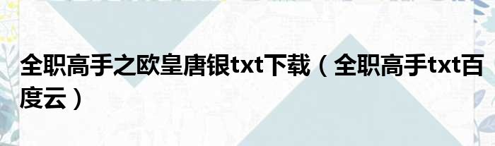 大家好,小东方来为大家解答以上的问题。全职高手之欧皇唐银txt下载,全职高手txt百度云这个很多人还不知道,现在让我们一起来看看吧!