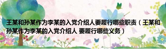 王某和孙某作为李某的入党介绍人要履行哪些职责(王某和孙某作为李某的入党介绍人 要履行哪些义务)