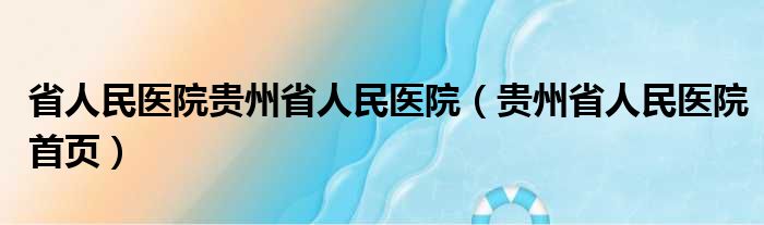 省人民医院贵州省人民医院(贵州省人民医院首页)