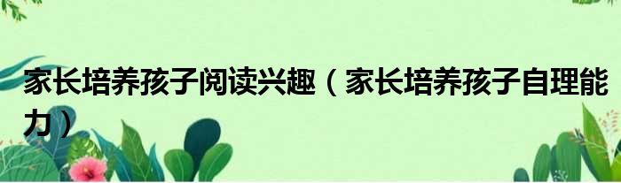 家长培养孩子阅读兴趣(家长培养孩子自理能力)