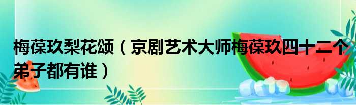 梅葆玖梨花颂(京剧艺术大师梅葆玖四十二个弟子都有谁)