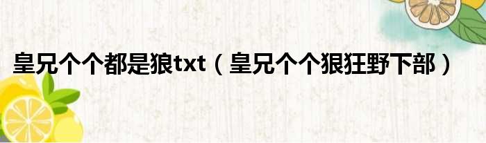 皇兄个个都是狼txt(皇兄个个狠狂野下部)