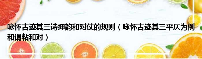 咏怀古迹其三诗押韵和对仗的规则(咏怀古迹其三平仄为例和谓粘和对)