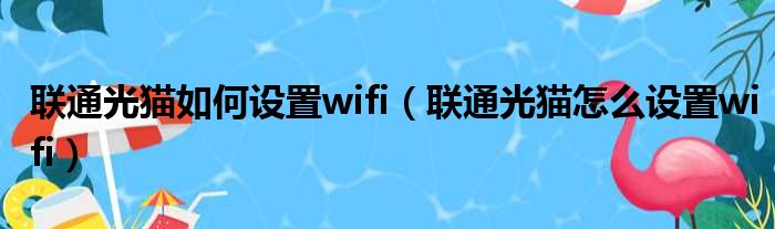 联通光猫如何设置wifi(联通光猫怎么设置wifi)