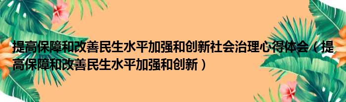 提高保障和改善民生水平加强和创新社会治理心得体会(提高保障和改善民生水平加强和创新)
