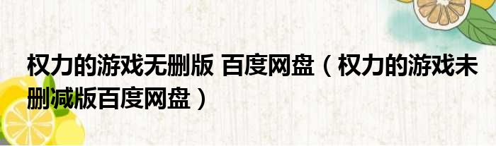 权力的游戏无删版 百度网盘(权力的游戏未删减版百度网盘)