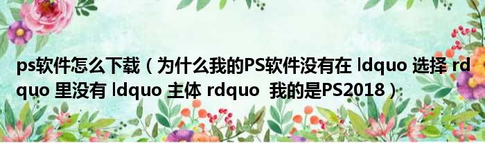 ps软件怎么下载(为什么我的PS软件没有在 ldquo 选择 rdquo 里没有 ldquo 主体 rdquo 我的是PS2018)