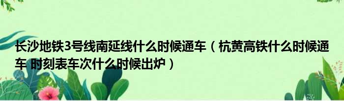 长沙地铁3号线南延线什么时候通车(杭黄高铁什么时候通车 时刻表车次什么时候出炉)