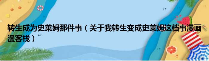 大家好,小东方来为大家解答以上的问题。转生成为史莱姆那件事,关于我转生变成史莱姆这档事漫画漫客栈这个很多人还不知道,现在让我们一起来看看吧!