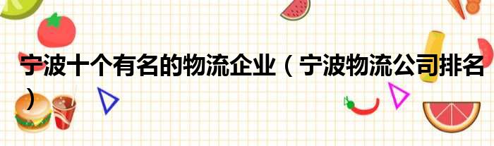 大家好,小东方来为大家解答以上的问题。宁波十个有名的物流企业,宁波物流公司排名这个很多人还不知道,现在让我们一起来看看吧!