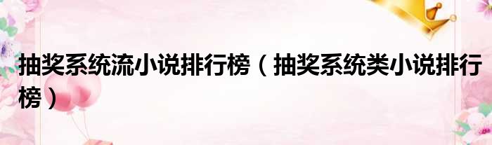 抽奖系统流小说排行榜(抽奖系统类小说排行榜)