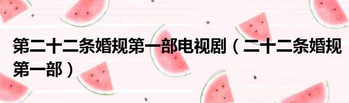 大家好,小东方来为大家解答以上的问题。第二十二条婚规第一部电视剧,二十二条婚规第一部这个很多人还不知道,现在让我们一起来看看吧!