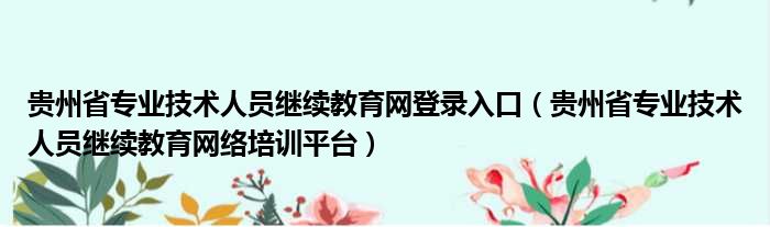 贵州省专业技术人员继续教育网登录入口(贵州省专业技术人员继续教育网络培训平台)