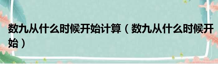 大家好,小东方来为大家解答以上的问题。数九从什么时候开始计算,数九从什么时候开始这个很多人还不知道,现在让我们一起来看看吧!