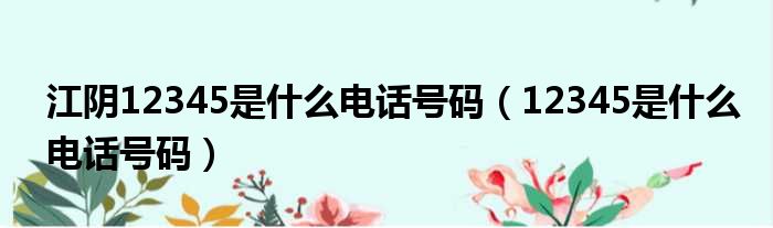 大家好,小东方来为大家解答以上的问题。江阴12345是什么电话号码,12345是什么电话号码这个很多人还不知道,现在让我们一起来看看吧!